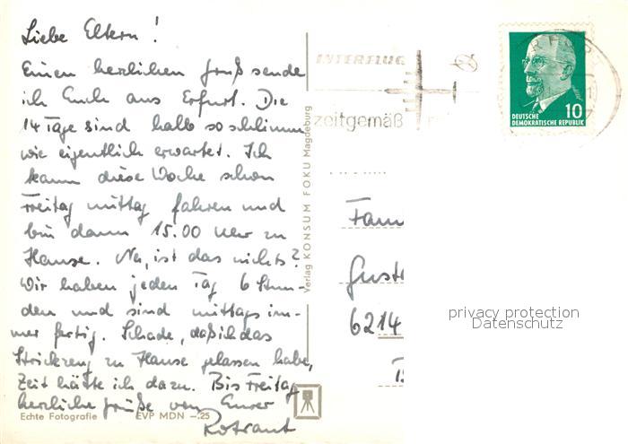 73156576 alte Postkarte Erfurt Bahnhof Vorplatz Rat des Bezirkes Blick vom Stadtpark Severikirche Bahnhofstrasse postalisch gelaufen Erhaltung siehe scans [FriedD77] KatCode: 11110016051000