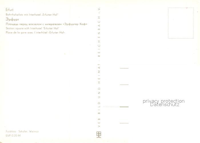 73166808 Erfurt Bahnhofsplatz Interhotel Erfurter Hof postalisch nicht gelaufen Erhaltung siehe scans [KathaD81] KatCode: 11110016051000