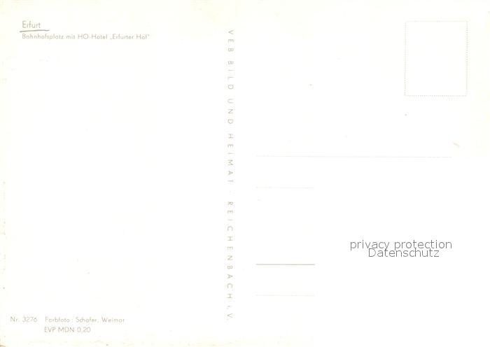 72936356 Erfurt Bahnhofsplatz mit HO Hotel Erfurter Hof postalisch nicht gelaufen Erhaltung siehe scans [WerneD78] KatCode: 11110016051000