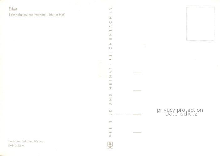 72997166 Erfurt Bahnhofsplatz mit Interhotel Erfurter Hof postalisch nicht gelaufen Erhaltung siehe scans [WerneD78] KatCode: 11110016051000