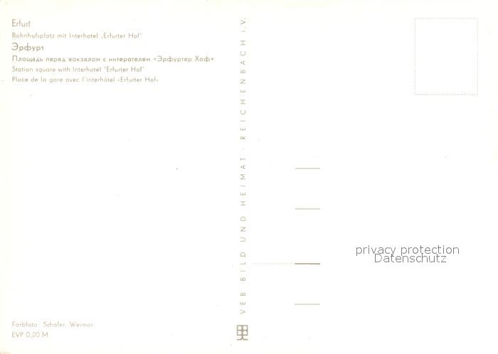 73151782 Erfurt Bahnhofsplatz mit Interhotel Erfurter Hof postalisch nicht gelaufen Erhaltung siehe scans [FriedD77] KatCode: 11110016051000