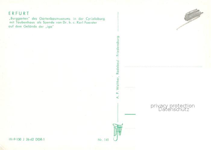 73033900 Erfurt Burggarten Gartenbaummuseum Cyriaksburg Taubenhaus postalisch nicht gelaufen Erhaltung siehe scans [PaolaD17] KatCode: 11110016051000