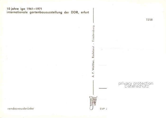 72742096 ERFURT CITY 10 Jahre IGA Internationale Gartenbauausstellung postalisch nicht gelaufen Erhaltung siehe scans [LiesaD40] KatCode: 11110016051000