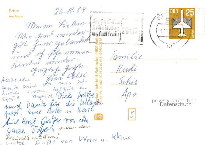 73842863 ERFURT CITY Am Anger Brunnen postalisch gelaufen Erhaltung siehe scans [FriedD77] alte Postkarte Frie Katcode 11110016051000