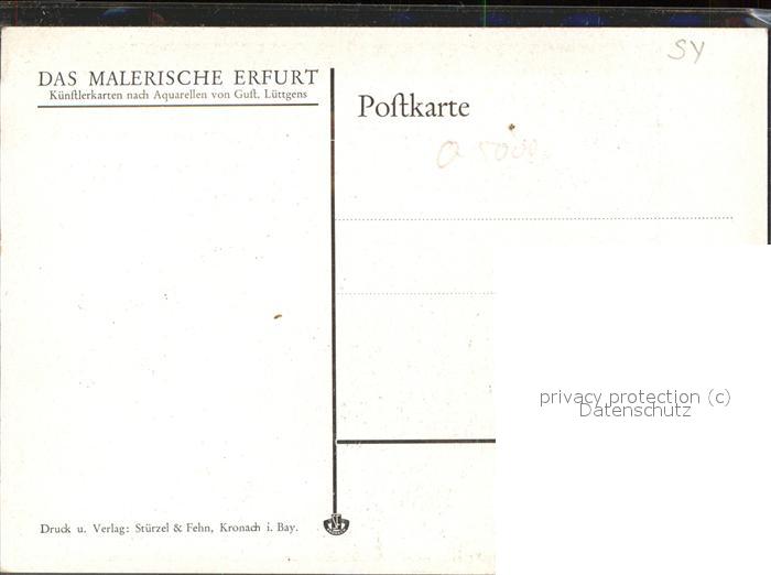 41423441 ERFURT CITY Am Daemmchen Aquarell postalisch nicht gelaufen Erhaltung siehe scans Alte Ansichtskarte Postkarte hz_W Katcode 11110016051000
