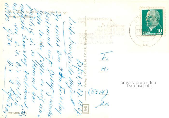 73842851 ERFURT CITY Ausstellungsgelaende der IGA Rendezvousbruecke postalisch gelaufen Erhaltung siehe scans [FriedD77] alte Postkarte Frie Katcode 11110016051000