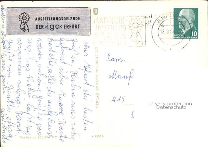 71894284 alte Postkarte ERFURT CITY Ausstellungsgelaende IGA Gartenbauausstellung postalisch gelaufen Erhaltung siehe scans KatCode: 11110016051000