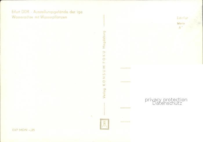 72506388 ERFURT CITY Ausstellungsgelaende Iga Wasserachse Wasserpflanzen postalisch nicht gelaufen Erhaltung siehe scans KatCode: 11110016051000
