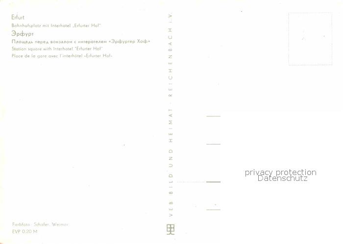72758469 ERFURT CITY Bahnhofsplatz Interhotel Erfurter Hof postalisch nicht gelaufen Erhaltung siehe scans [KathaD81] KatCode: 11110016051000