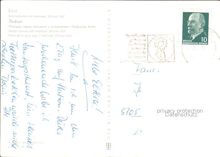 71992158 alte Postkarte ERFURT CITY Bahnhofsplatz mit Interhotel Erfurter Hof postalisch gelaufen Erhaltung siehe scans KatCode: 11110016051000