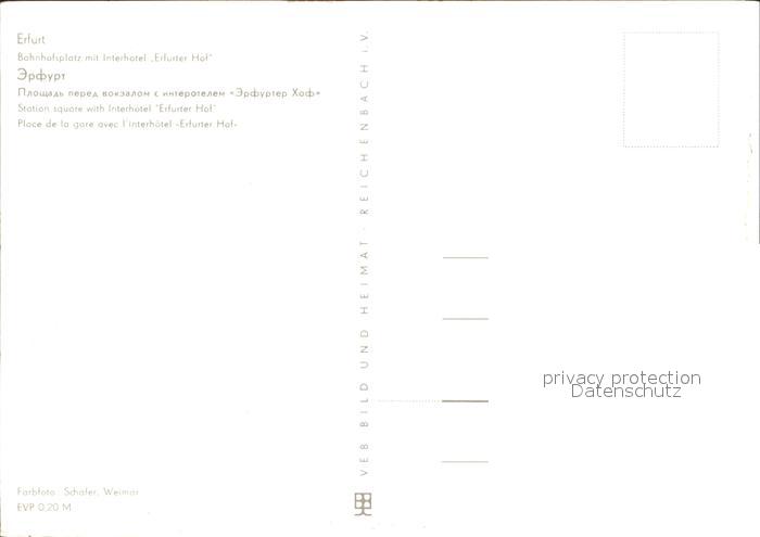 72032688 ERFURT CITY Bahnhofsplatz mit Interhotel Erfurter Hof postalisch nicht gelaufen Erhaltung siehe scans KatCode: 11110016051000