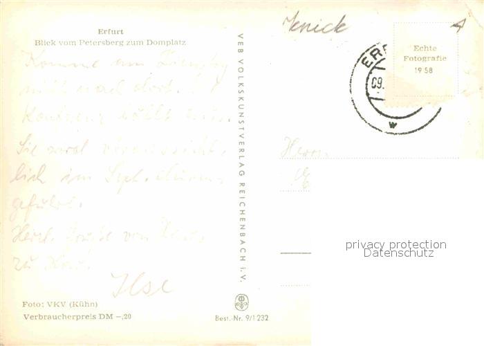 72643854 alte Postkarte ERFURT CITY Blick vom Petersberg zum Domplatz postalisch gelaufen Erhaltung siehe scans [FriedD77] KatCode: 11110016051000