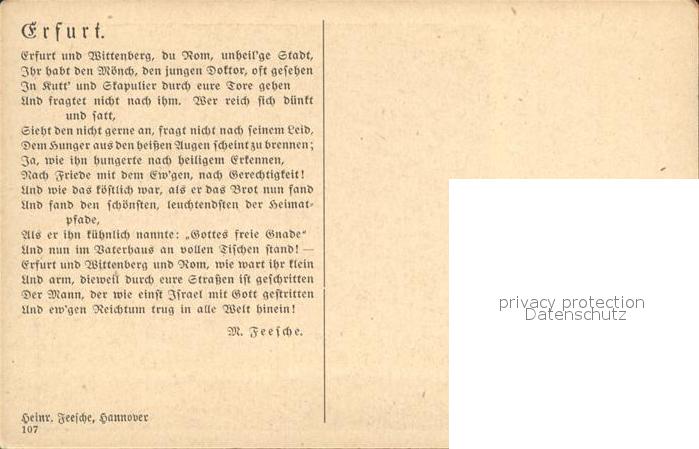 71867929 ERFURT CITY Dom Kuenstlerkarte Gedicht M. Feesche postalisch nicht gelaufen Erhaltung siehe scans KatCode: 11110016051000