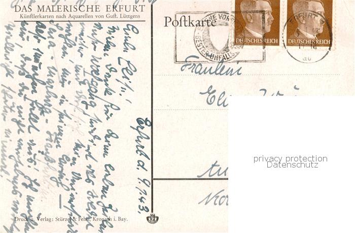73771668 ERFURT CITY Dom u. Severin-Kirche Kuenstlerkarte Aquarell Guft. Luettgens postalisch gelaufen Erhaltung siehe scans [LiesaD40] alte Postkarte Lies Katcode 11110016051000