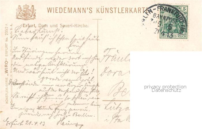 73816625 ERFURT CITY Dom und Severi Kirche postalisch gelaufen Bahnpost Erhaltung siehe scans [FriedD77] Bahnpost alte Postkarte Frie Katcode 11110016051000