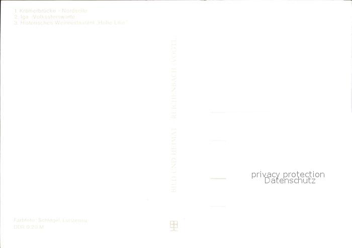 72263588 ERFURT CITY Fachwerk Kraemerbruecke Volkssternwarte Weinrestaurant Hohe Lilie postalisch nicht gelaufen Erhaltung siehe scans KatCode: 11110016051000