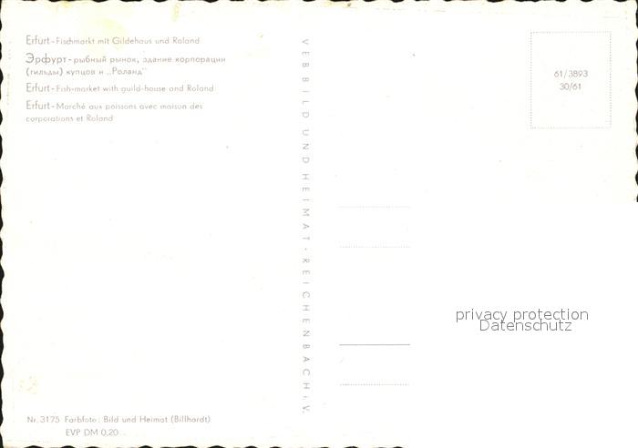 72418387 ERFURT CITY Fischmarkt mit Gildehaus und Roland postalisch nicht gelaufen Erhaltung siehe scans KatCode: 11110016051000