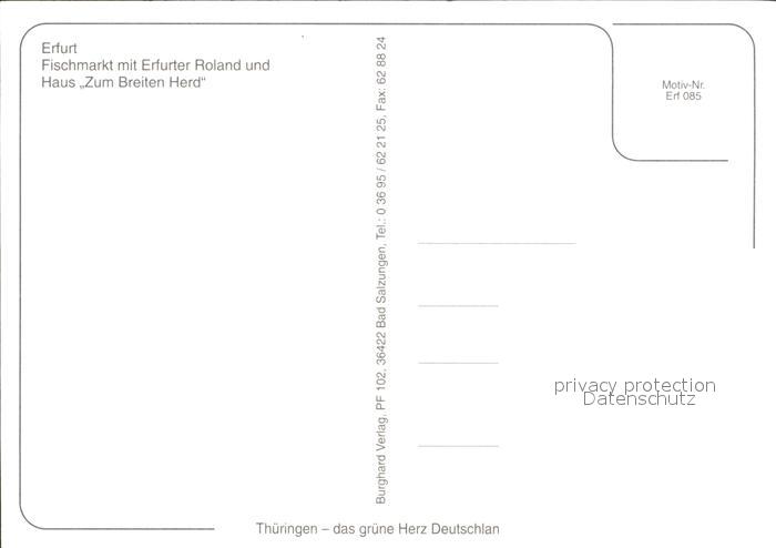 72346957 ERFURT CITY Fischmarkt mit Roland und Haus Zum Breiten Herd postalisch nicht gelaufen Erhaltung siehe scans KatCode: 11110016051000