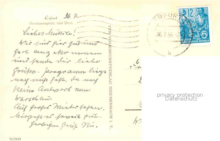 72632760 alte Postkarte ERFURT CITY Hermannsplatz Brunnen Dom postalisch gelaufen Erhaltung siehe scans [FriedD77] KatCode: 11110016051000