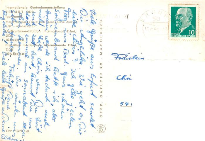 73905334 ERFURT CITY IGA Erfurt Ausstellungsbus postalisch gelaufen Erhaltung siehe scans [WerneD78] alte Postkarte Wern Katcode 11110016051000