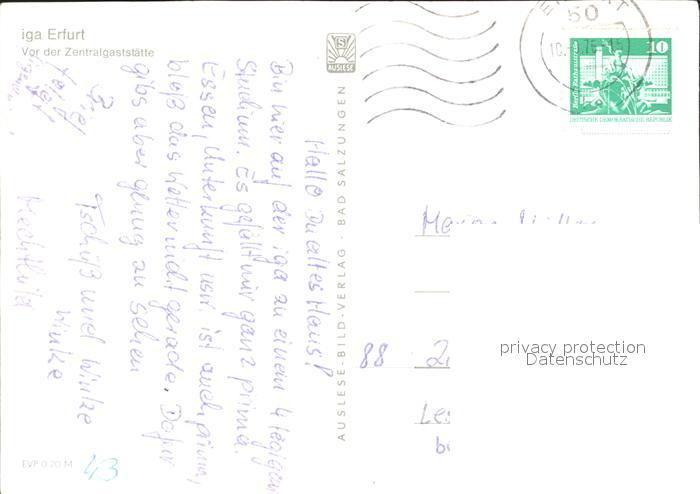 72141220 alte Postkarte ERFURT CITY IGA Erfurt Vor der Zentralgaststaette postalisch gelaufen Erhaltung siehe scans KatCode: 11110016051000