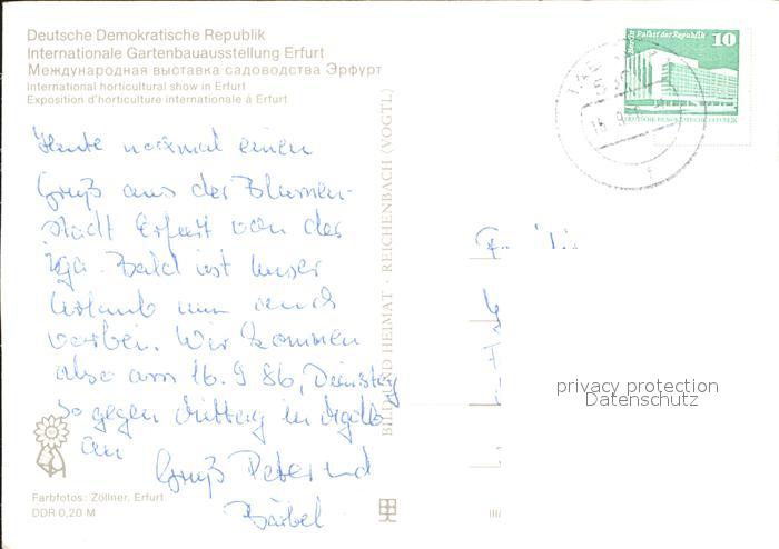72279783 alte Postkarte ERFURT CITY iga Internationale Gartenbauausstellung postalisch gelaufen Erhaltung siehe scans KatCode: 11110016051000