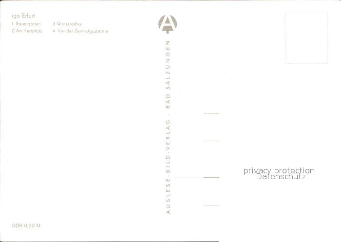72375374 ERFURT CITY IGA Rosengarten Am Festplatz Wasserachse Vor der Zentralgaststaette postalisch nicht gelaufen Erhaltung siehe scans KatCode: 11110016051000