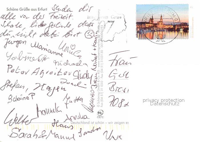 72714380 alte Postkarte ERFURT CITY Im Tal der Gera postalisch gelaufen Erhaltung siehe scans [LiesaD40] KatCode: 11110016051000