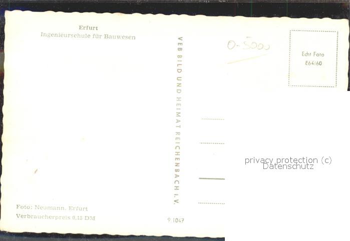 41423326 ERFURT CITY Ingenieurschule fuer Bauwesen postalisch nicht gelaufen Erhaltung siehe scans Alte Ansichtskarte Postkarte hz_W Katcode 11110016051000