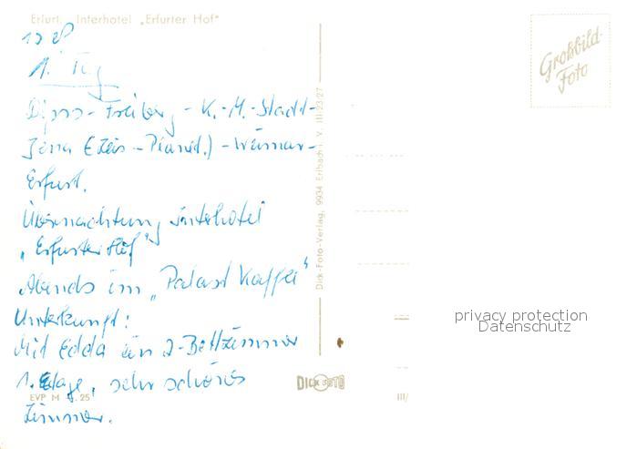 73739261 ERFURT CITY Interhotel Erfurter Hof postalisch nicht gelaufen Erhaltung siehe scans [LiesaD40] Lies Katcode 11110016051000