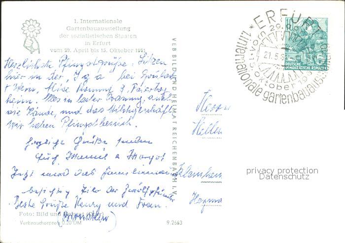 72208740 alte Postkarte ERFURT CITY Internationale Gartenausstellung postalisch gelaufen Erhaltung siehe scans KatCode: 11110016051000