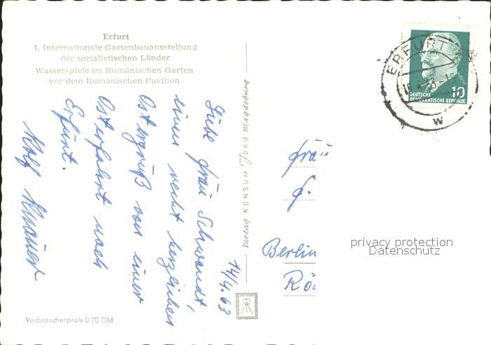 72092823 alte Postkarte ERFURT CITY Internationale Gartenbauausstellung postalisch gelaufen Erhaltung siehe scans KatCode: 11110016051000