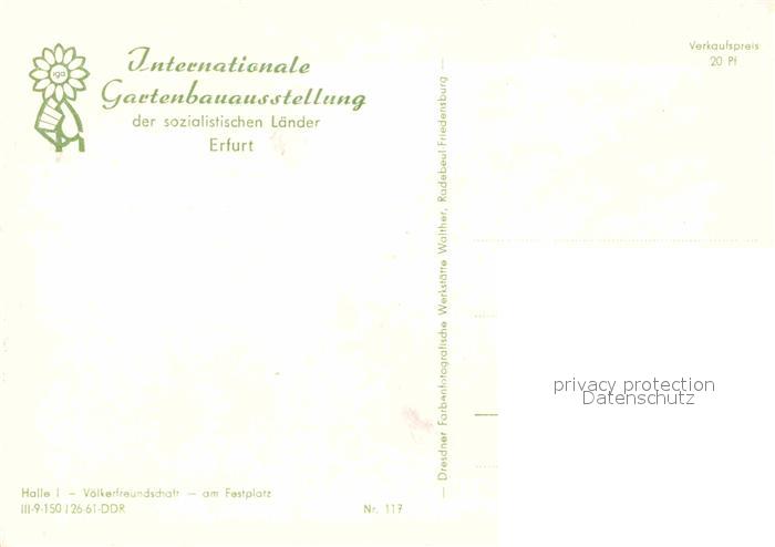72823286 ERFURT CITY Internationale Gartenbauausstellung der sozialistischen Laender postalisch nicht gelaufen Erhaltung siehe scans [FriedD77] KatCode: 11110016051000