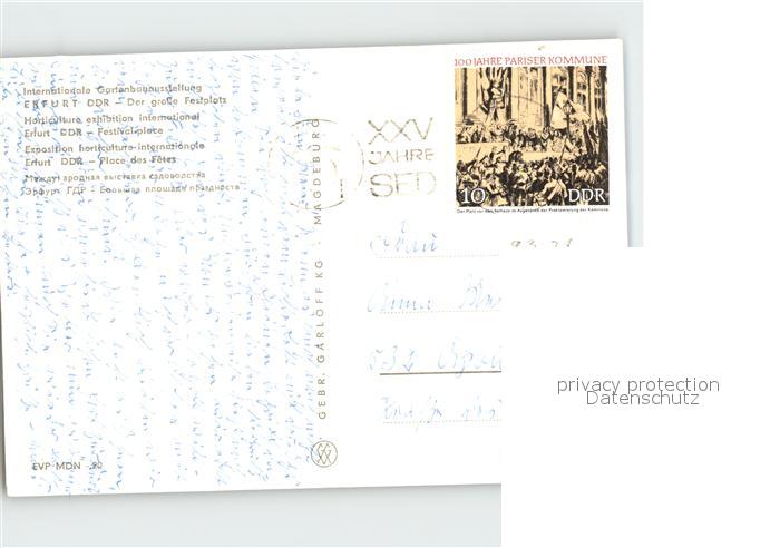 72038528 alte Postkarte ERFURT CITY Internationale Gartenbauausstellung Grosser Festplatz postalisch gelaufen Erhaltung siehe scans KatCode: 11110016051000
