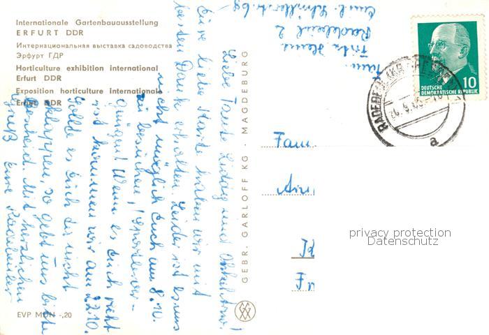 73868651 ERFURT CITY Internationale Gartenbauausstellung Teilansichten postalisch gelaufen Erhaltung siehe scans [WerneD78] alte Postkarte Wern Katcode 11110016051000