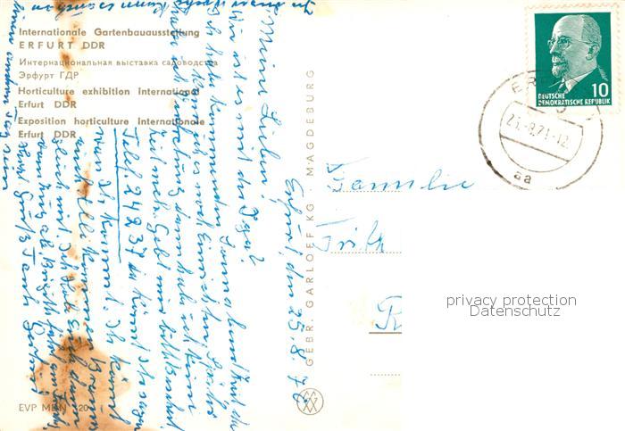 73842847 ERFURT CITY Internationale Gartenbauausstellung Treppe Park Bus postalisch gelaufen Erhaltung siehe scans [FriedD77] alte Postkarte Frie Katcode 11110016051000