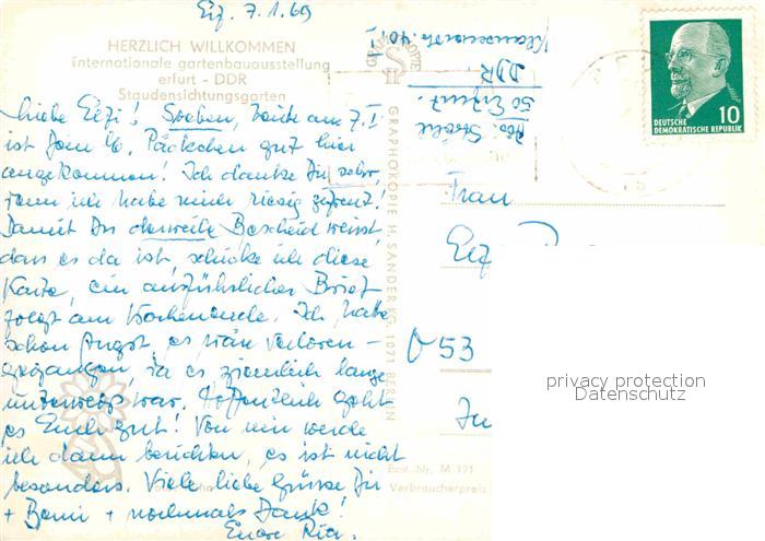 72814161 alte Postkarte ERFURT CITY Karl Foerster Garten Staudensichtungsgarten Intern. Gartenbauausstellung postalisch gelaufen Erhaltung siehe scans [FriedD77] KatCode: 11110016051000