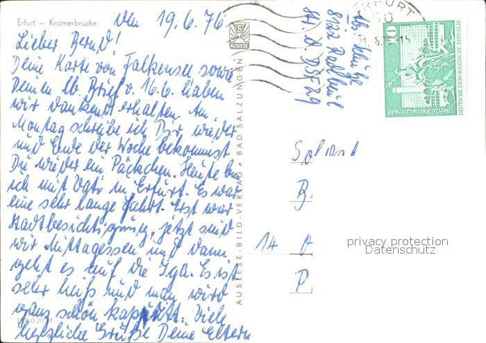 72284901 alte Postkarte ERFURT CITY Kraemerbruecke postalisch gelaufen Erhaltung siehe scans KatCode: 11110016051000