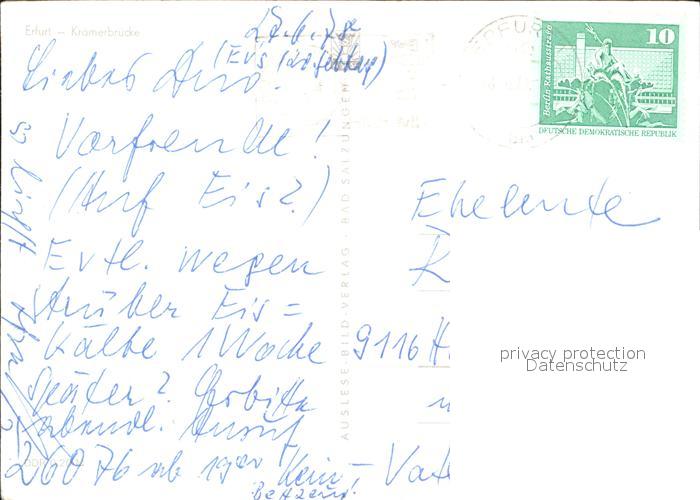 72183874 alte Postkarte ERFURT CITY Kraemerbruecke postalisch gelaufen Erhaltung siehe scans KatCode: 11110016051000