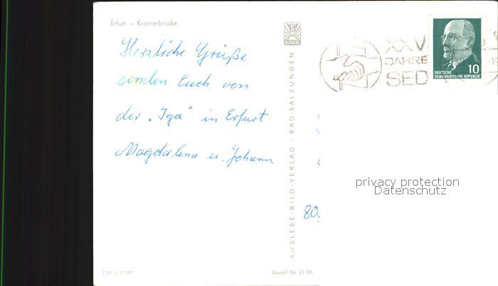 72586781 alte Postkarte ERFURT CITY Kraemerbruecke postalisch gelaufen Erhaltung siehe scans [WerneD78] KatCode: 11110016051000