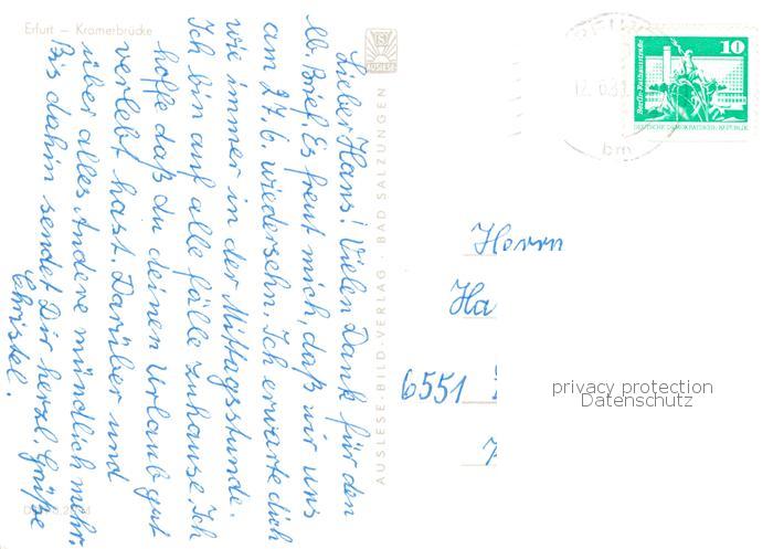 73842850 ERFURT CITY Kraemerbruecke postalisch gelaufen Erhaltung siehe scans [FriedD77] alte Postkarte Frie Katcode 11110016051000