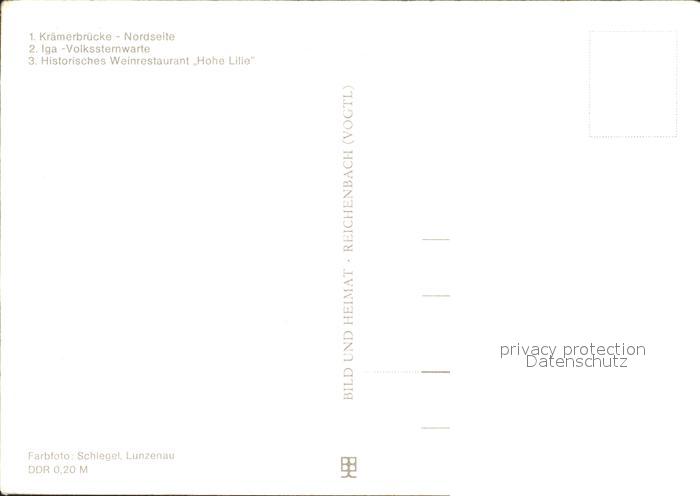 72337001 ERFURT CITY Kraemerbruecke Iga Volkssternwarte Historisches Weinrestaurant Hohe Lilie postalisch nicht gelaufen Erhaltung siehe scans KatCode: 11110016051000