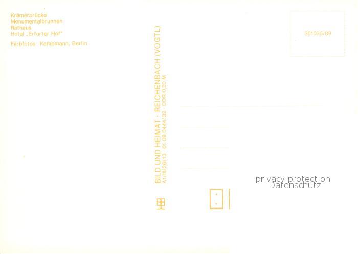 73842475 ERFURT CITY Kraemerbruecke Monumentalbrunnen Rathaus Hotel Erfurter Hof postalisch nicht gelaufen Erhaltung siehe scans [FriedD77] Frie Katcode 11110016051000