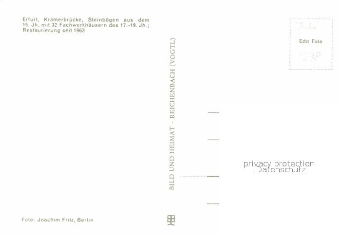72633849 ERFURT CITY Kraemerbruecke Steinboegen 15. Jhdt. Fachwerkhaeuser 17./19. Jhdt. postalisch nicht gelaufen Erhaltung siehe scans [FriedD77] KatCode: 11110016051000