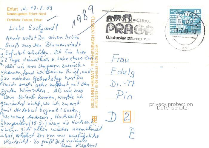 73781137 ERFURT CITY Neubaugebiet Erfurt-Nord postalisch gelaufen Erhaltung siehe scans [FriedD77] alte Postkarte Frie Katcode 11110016051000