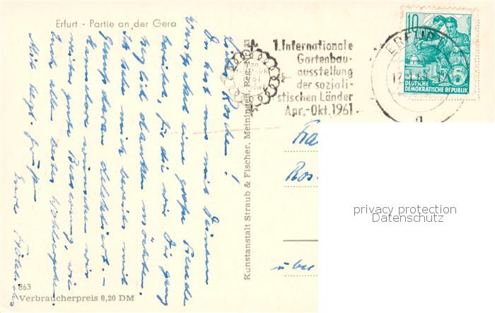 73841091 ERFURT CITY Partie an der Gera postalisch gelaufen Erhaltung siehe scans [FriedD77] alte Postkarte Frie Katcode 11110016051000