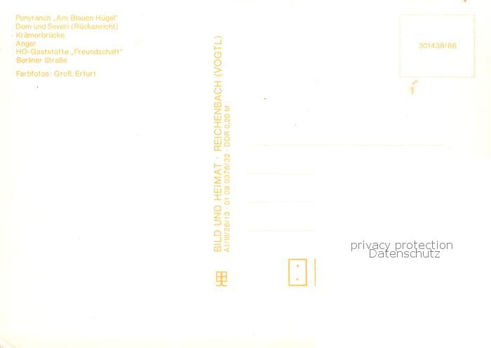 73842471 ERFURT CITY Ponyranch Am Blauen Huegel Dom und Severi Kraemerbruecke Anger HOG Freundschaft Berliner Strasse postalisch nicht gelaufen Erhaltung siehe scans [FriedD77] Frie Katcode 11110016051000