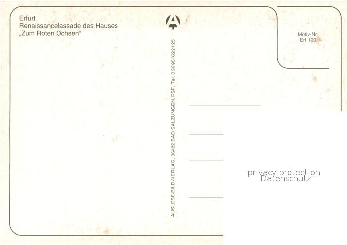 73734565 ERFURT CITY Renaissancefassade des Hauses Zum Roten Ochsen postalisch nicht gelaufen Erhaltung siehe scans [FriedD77] Frie Katcode 11110016051000
