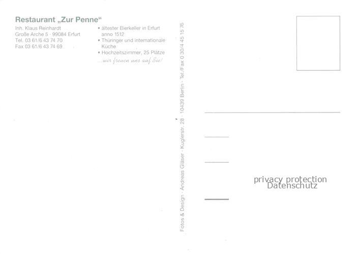 74096438 ERFURT CITY Restaurant Zur Penne Gastraeume postalisch nicht gelaufen Erhaltung siehe scans [WerneD78] Wern Katcode 11110016051000