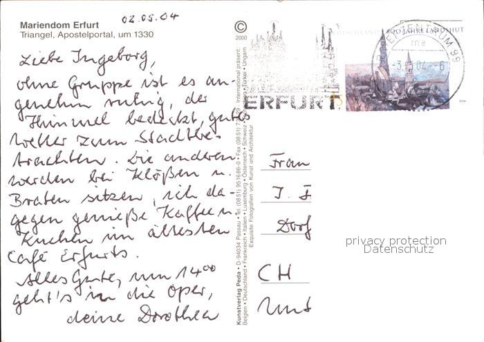 72573701 alte Postkarte ERFURT CITY Triangel Apostelportal postalisch gelaufen Erhaltung siehe scans [KathaD79] KatCode: 11110016051000